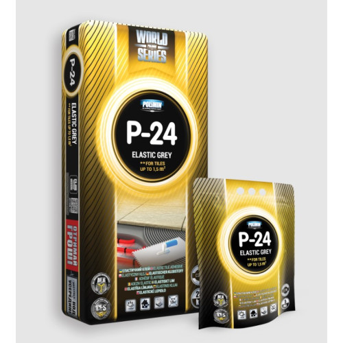 Эластичный клей Полимин П-24 произведён на цементной основе с добавлением минеральных заполнителей и модифицирующих добавок.