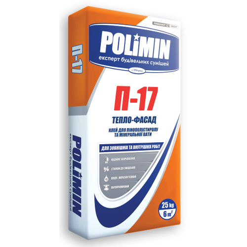 Полимин П-17, Клей для пенополистирола и минеральной ваты, 25 кг