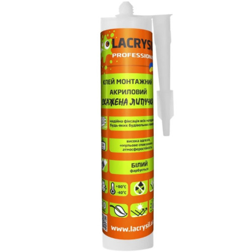 Клей монтажный Lacrysil Бешеная Липучка акриловый - это высокоэффективный акриловый клей на водной основе с чрезвычайно сильной начальной фиксацией. Предназначена для быстрого и надежного приклеивания широкого спектра строительных и отделочных материалов внутри и снаружи помещений (под навесом). Его формула обеспечивает мгновенный схват, что значительно упрощает монтажные работы. Основные характеристики: Основа: Акриловая дисперсия (на водной основе). Цвет: Белый (после высыхания с..