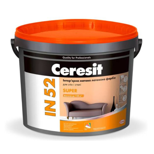 Акриловая краска Ceresit IN 52 (CT-52) SUPER предназначена для отделки поверхностей строительных конструкций и элементов внутри зданий по минеральным основаниям (бетон, кирпич, цементно-песчаные штукатурки, гипсовые штукатурки и плиты и др.) и органическим основаниям (обои, полистирольные плиты, фанера, древесностружечные и древесноволокнистые плиты) которые несут высокую эксплуатационную нагрузку и требуют частого мытья с применением бытовых моющих и дезинфицирующих средств. Может использоваться в помещениях с повышенной влажностью. Не применять для покраски полов.