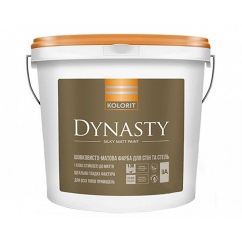 Kolorit Dynasty, Краска латексная интерьерная, база А, белая - Предназначена для окрашивания оштукатуренных, бетонных, кирпичных и других минеральных поверхностей, а также гипсокартонных, древесноволокнистых, древесностружечных плит и поверхностей, окрашенных ранее водно-дисперсионной краской. Шелковисто-матовая, особенно стойкая к мойке, латексная краска на акрилатной основе для внутренних работ. Предназначена для окрашивания оштукатуренных, бетонных, кирпичных и других минеральных пов..