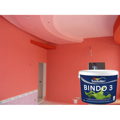 Sadolin BINDO 3, Глубокоматовая латексная краска, 0,9 л, Легко наносимая краска для внутренних работ имеет высокую покровную способность. Краска не стекает и быстро сохнет, окрашенную поверхность можно мыть (класс 2 стойкости к мокрому истиранию). Изделие не содержит органических растворителей, практически нет запаха. Цветируется в гамме пастельных цветов. Краска отвечает требованиям экомаркировки Европейского союза. Продукт предназначен для покраски потолков в жилых, офисных..