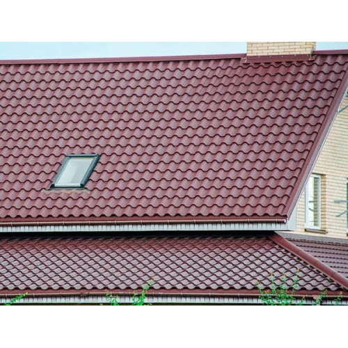Металлочерепица отличается относительно невысокой ценой, практичностью и небольшим весом: 4-5 кг/м?, что позволяет сэкономить на стоимости стропильной конструкции и обойтись без дополнительных работ по упрочнению дома.
