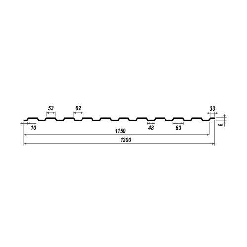 | Тип покрытия | Цвет (принт) | Применение | Толщина металла, мм | Между рёбрами, мм | Ширина рабочая, мм | Высота волны, мм | Ширина полная, мм |