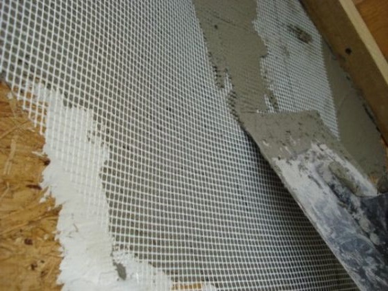 - Нанести слой специального клея – он должен полностью покрыть сетку.