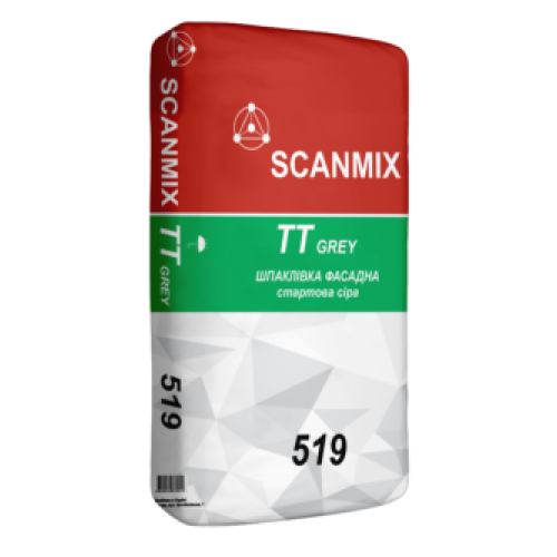 Scanmix ТТ Grey 519 - Универсальная серая стартовая шпаклевка, которая используется для проведения строительных и ремонтных работ. Толщина слоя - до 20 мм. Расход - от 2 до 3 кг/м2/мм