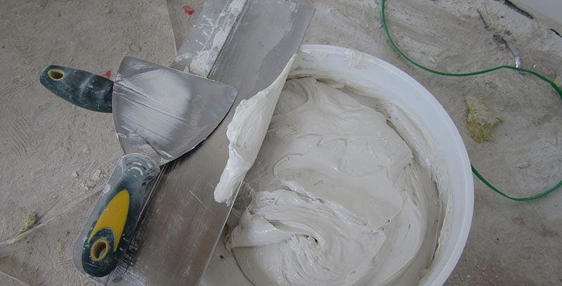 Состав Кнауф Шитрок Супер Финиш слегка перемешивается в ведре перед применением. При необходимости добавляется небольшое количество воды, порциями по 50 мл при тщательном перемешивании.