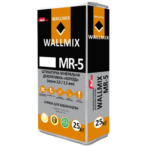 Штукатурка WALLMIX МR-5 предназначена для декоративной отделки внутри и снаружи зданий бетонных, оштукатуренных, гипсокартонных и других минеральных оснований, а также применения в системах теплоизоляции фасадов с целью получения разнообразных "короедных" фактур. Предусматривает дальнейшее окрашивание акриловыми, силикатными, силиконовыми и другими красками как на водной основе, так и на основе органических растворителей.