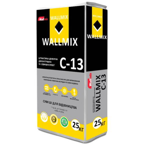 Wallmix C-13, Штукатурка цементная для внутренних и наружных работ, 25 кг