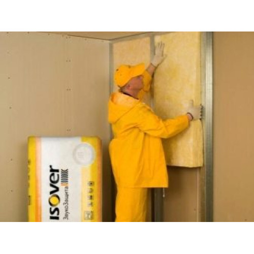 Isover Звукозащита также имеет высокие параметры теплоизоляции. Материал имеет высокие звукопоглощающие характеристики. Плита толщиной 50 мм которой размещена в однослойной гипсокартонной перегородки имеет индекс изоляции воздушного шума составляющие 45 дБ. Область применения Isover Звукозащита применяется в различных строительных конструкциях, наиболее эффективные места размещения: Подвесные потолки; Межкомнатные перегородки; Внутренняя облицовка; Подпольное пространство..